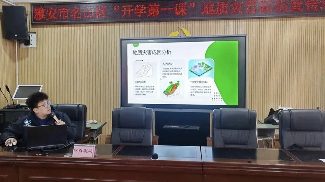活動(dòng)當(dāng)天,公司派駐名山自然資源和規(guī)劃局的技術(shù)人員張文舟擔(dān)任主講人,憑借扎實(shí)的專(zhuān)業(yè)知識(shí)和豐富的實(shí)踐經(jīng)驗(yàn),為師生們帶來(lái)了一場(chǎng)生動(dòng)且實(shí)用的地質(zhì)災(zāi)害防治知識(shí)講座。